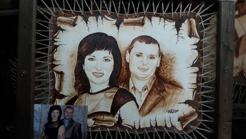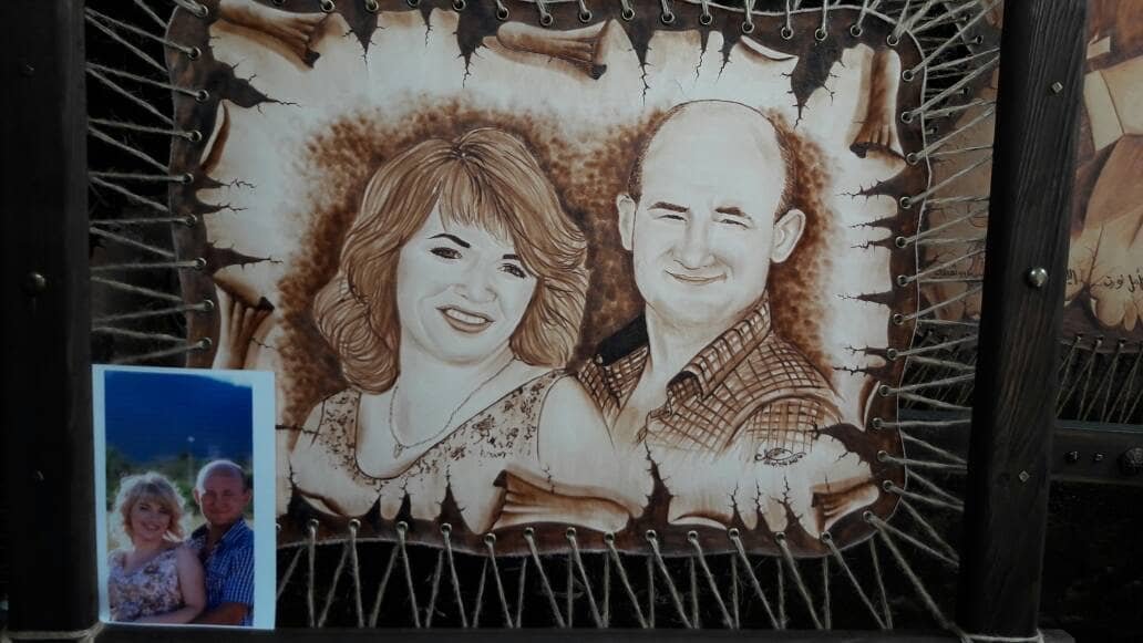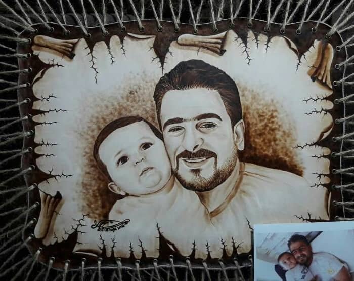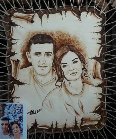 رسم صورة ل شخصين حسب اختياركم بطريقة الحرق على الجلد الطبيعي